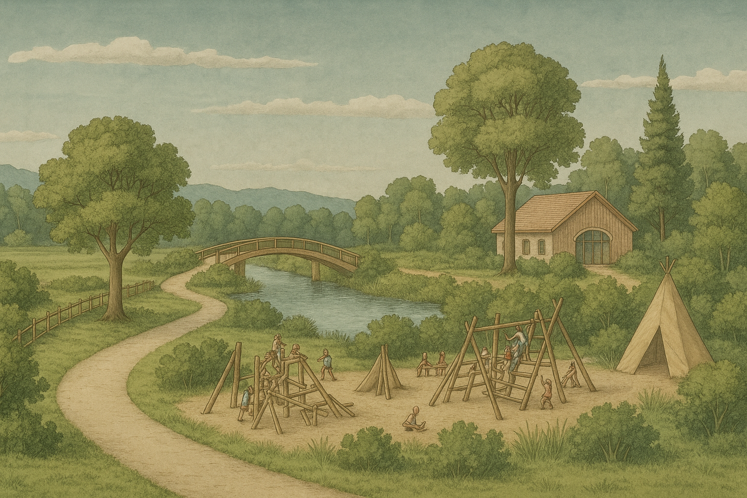 Creëer een speelplek waar kinderen de natuur ontdekken en hun fantasie de vrije loop laten.